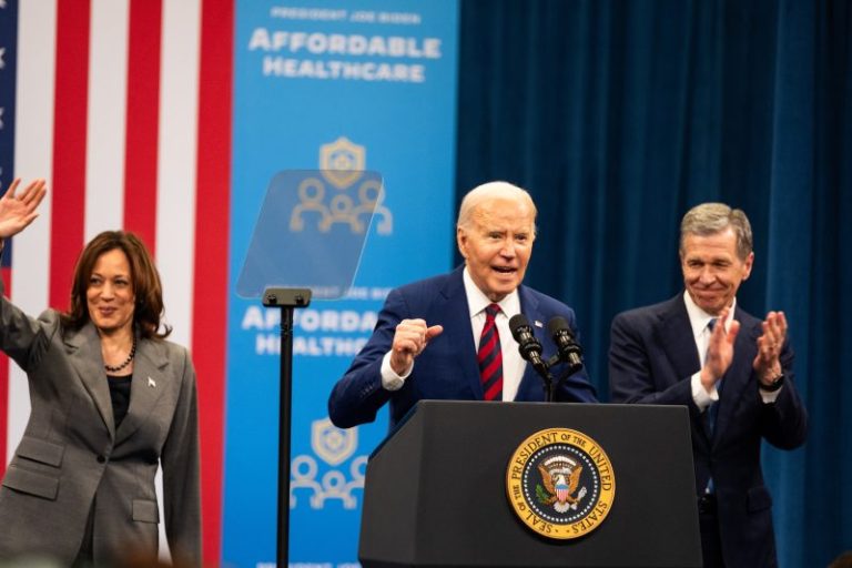 On Tuesday, Biden and Harris touted the president’s record on health care during an official event in Raleigh, part of an ongoing push to celebrate the 14th anniversary of the Affordable Care Act. Anita Dunn, Biden’s senior adviser, told reporters Monday that the event would offer a clear “split screen” between Biden and his Republican foes.