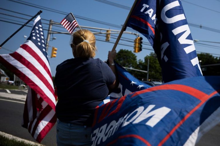 In Bedminster, N.J., Trump loyalists spent the day at a busy intersection about four miles from the former president’s golf club and residence. They waved Trump 2024 flags as drivers blared their horns and as a DJ in the group blasted country tunes and songs with MAGA messaging.